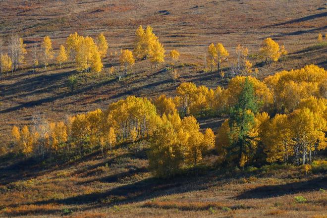 莫日格勒河观景台:下午4点用3倍长焦拍摄河道S形曲线,建议搭配CPL偏振镜消除水面反光。
